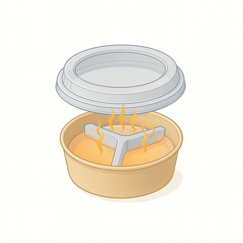 The generated heat transfers through the inner wall to warm the food compartment. Within minutes, the meal reaches a pleasant temperature.